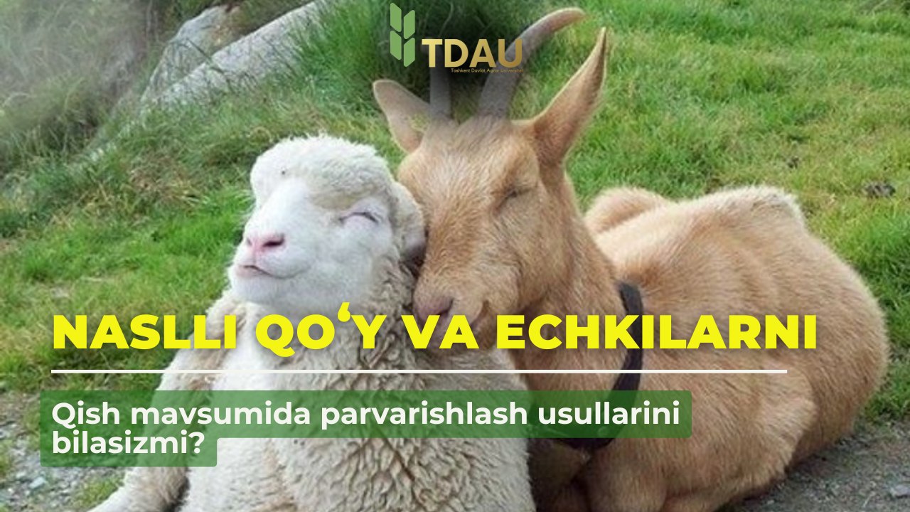 Qish mavsumida aholi xonadonlarida naslli qo‘y va echkilarni parvarishlash uchun maxsus sharoit yaratish zarur. Bu hayvonlarning sog‘lom o‘sishi, mahsuldorligi va qishda nobud bo‘lmasligi uchun quyidagi maslahatlarga amal qilish kerak: Xonani tayyorlash Isitiladigan joy: Qo‘y va echkilar qishda sovuqdan himoyalanishi kerak. Xona issiqlikni yaxshi ushlab turuvchi bo‘lishi va shamollashdan saqlanishi lozim. Quruqlik: Podada quruqlik va tozalikka e'tibor bering. Namlik yuqori bo‘lsa, hayvonlar kasallikka chalinishi mumkin. Shamollatish: Toza havo almashinuvi uchun shamollatish tizimini tashkil eting, lekin sovuq oqimiga yo‘l qo‘ymang. Oziqlantirish Yuqori sifatli ozuqa: Naslli hayvonlar uchun ozuqa balansli bo‘lishi kerak. Yaylov yo‘qligida: