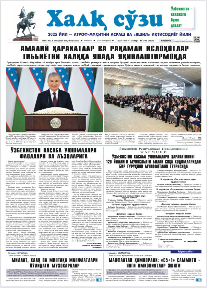 In the “Xalq So‘zi” newspaper dated November 11, 2025, issue No. 233, an article titled “Transformation of the Education System — an Important Investment for New Uzbekistan” by Vladimir Trukhachev, Rector of the Russian State Agrarian University – K.A. Timiryazev Moscow Agricultural Academy, Academician of the Russian Academy of Sciences, Doctor of Agricultural and Economic Sciences, was published in honor of the 95th anniversary of Tashkent State Agrarian University.