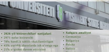 Tashkent State Agrarian University — with a 95-year history, advanced science, and innovations, further strengthens the agricultural potential of our country.