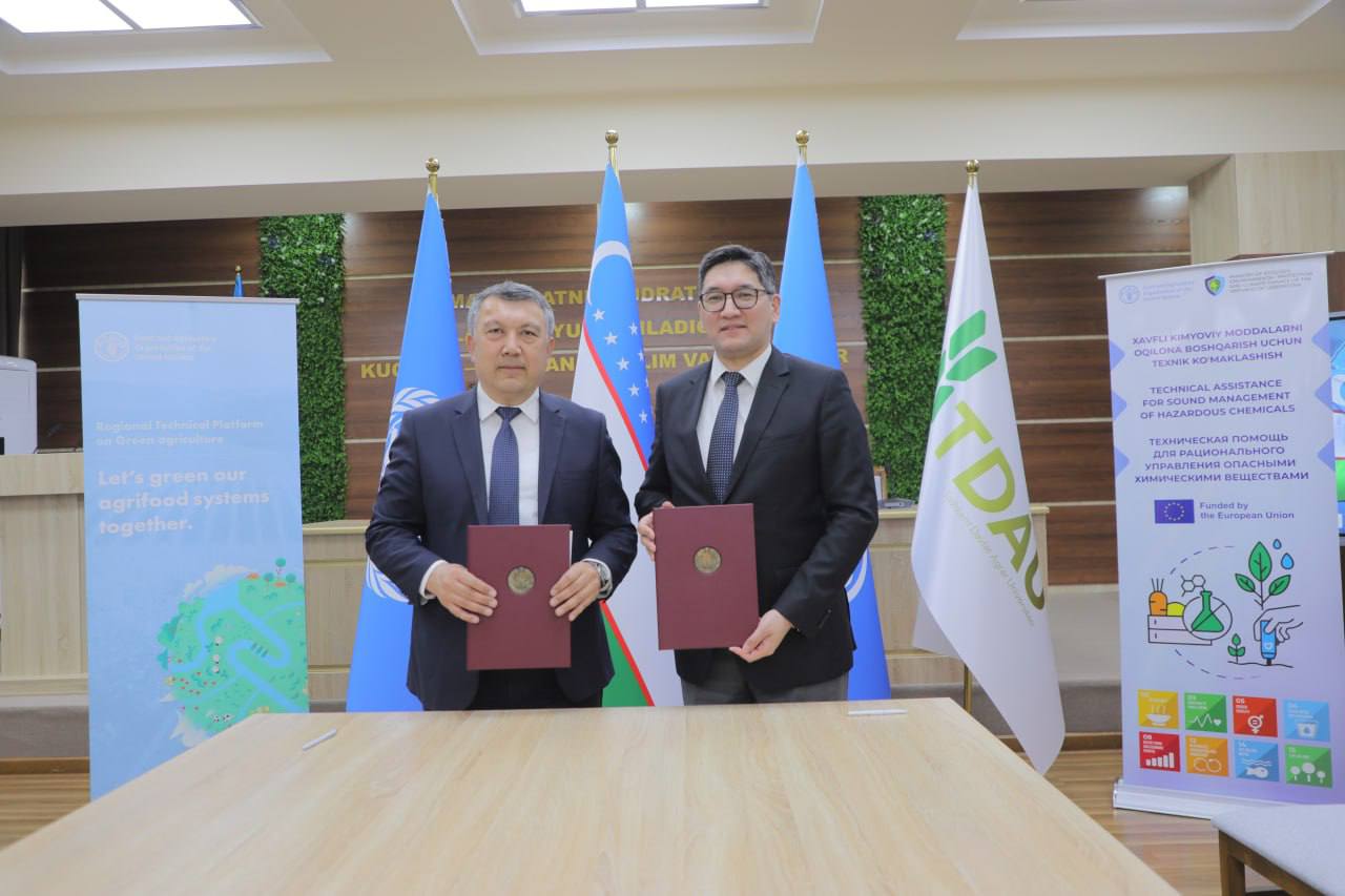 This agreement is implemented within the framework of the "Technical Assistance for Sound Management of Hazardous Chemicals" project, carried out with the financial support of the European Union. As part of the collaboration, field trials of Integrated Pest Management (IPM) techniques will be conducted in the Tashkent and Syrdarya regions on key crops, including cotton, wheat, apple orchards, and greenhouse tomatoes. These trials are designed to compare sustainable and conventional agricultural approaches, as well as to explore opportunities for maintaining yields while reducing the use of chemical pesticides. The initiative places special emphasis on strengthening national capacity by actively involving farmers, researchers, students, and industry experts. During the field trials, biological and integrated protection methods will be tested, and crop performance and environmental indicators will be monitored.