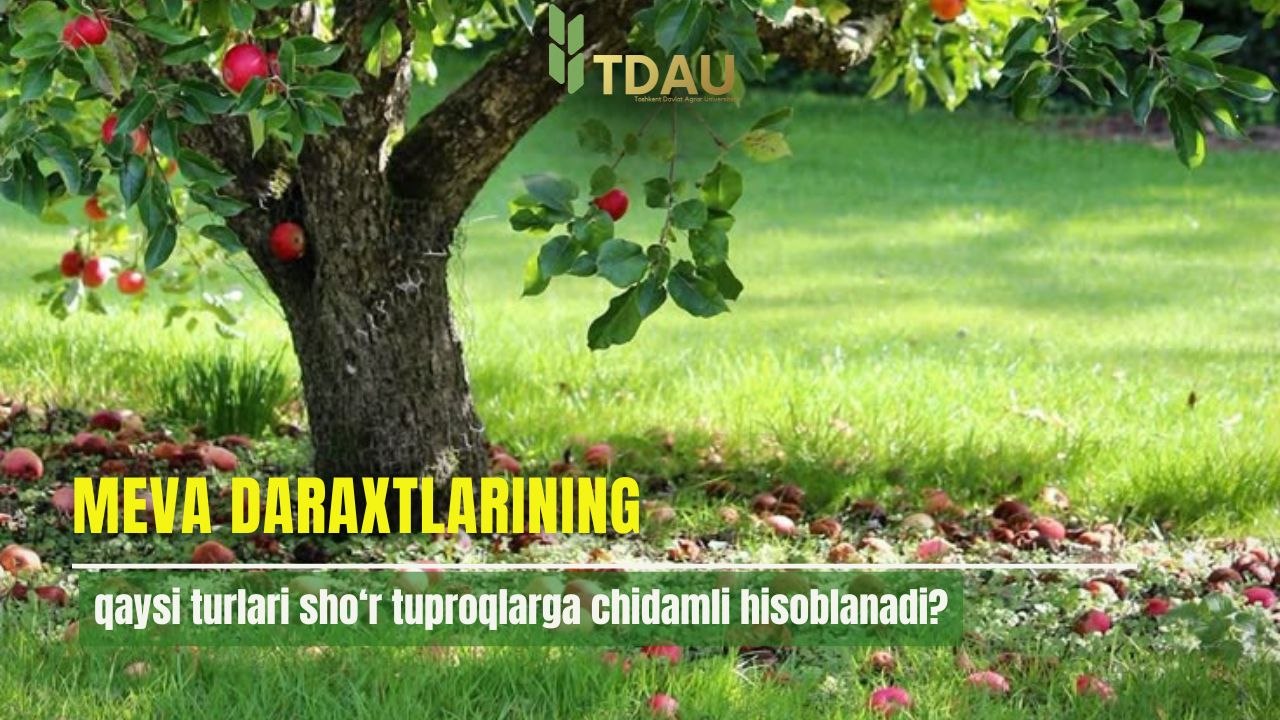 Meva daraxtlarining sho‘rga chidamliligi ko‘p jihatdan ularning turiga, naviga, individual xususiyatlariga va payvandlariga bog‘liq. Unumdor yerlarda va organik o‘g‘itlar solingan sharoitda mevali daraxtlar ancha yuqori darajadagi sho‘rlanishga chiday oladi.