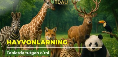 • Hayvonlarning tabiatda tutgan o‘rni va tarqalishi juda muhim bo‘lib, ular ekotizimlarning barqarorligi, oziq-ovqat zanjiri va biologik xilma-xillikni ta’minlashda asosiy rol o‘ynaydi