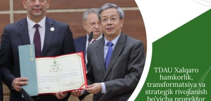 • Toshkent davlat agrar universiteti Xalqaro hamkorlik, transformatsiya va strategik rivojlanish boʻyicha prorektori A.Abduvasikov Anhui Qishloq xo‘jaligi universiteti Faxriy professori unvoni bilan taqdirlandi