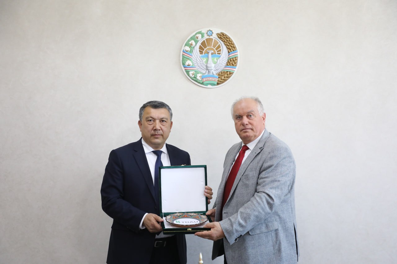 Toshkent davlat agrar universitetida xalqaro hamkorlikni kengaytirish va qishloq xo‘jaligi mahsulotlarini qayta ishlash sohasiga zamonaviy texnologiyalarni jalb etish maqsadida navbatdagi muhim uchrashuv bo‘lib o‘tdi. Universitet rektori Narzullo Oblomuradov Italiyaning dunyoga mashhur “PIGO SRL” kompaniyasi vakili Gordan Obradovich bilan muzokaralar olib bordi. Uchrashuvda oziq-ovqat va agro mahsulotlarni chuqur qayta ishlash, sohada innovatsion uskunalar va yuqori texnologik yechimlarni joriy etish masalalari atroflicha muhokama qilindi.