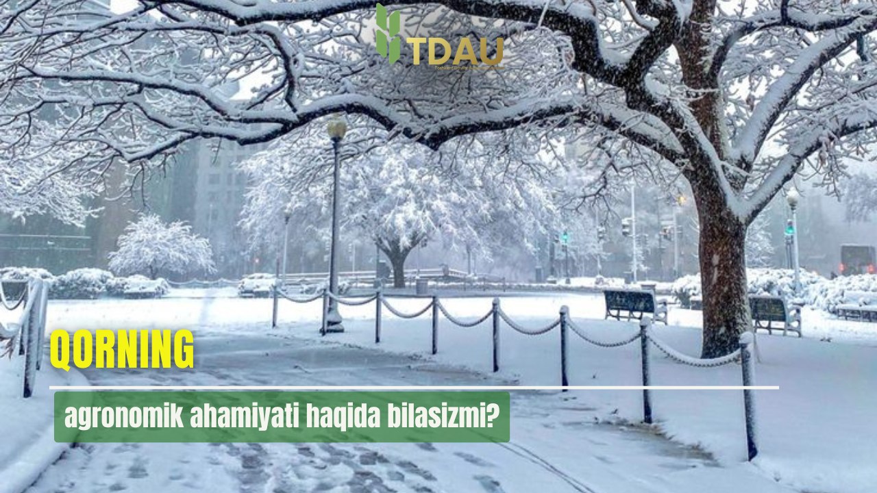 Ma’lumki, qish mavsumida dalalarda faol agrotexnik ishlar vaqtincha to‘xtaydi. Yer yuzasi oppoq qor bilan qoplanib, sokin holatga kiradi. Biroq bu sukunat ostida qishloq xo‘jaligi uchun nihoyatda muhim jarayonlar davom etadi. Qor oddiy yog‘ingarchilik emas. U o‘z vaqtida va yetarli miqdorda yog‘sa, qishloq xo‘jaligi uchun chinakam baraka manbai hisoblanadi. Ko‘pincha amaliyotda “10:1” qoidasi qo‘llanilib, 10 sm qor 1 sm suyuq suvga teng deb qaraladi. Ammo amalda qorning zichligi va namligi turlicha bo‘ladi. Ayrim hollarda qor quruq, yengil va paxmoq bo‘lib, suv miqdori kam bo‘ladi. Ba’zan esa qor ho‘l va og‘ir bo‘lib, atigi 3–5 sm qor 1 sm suyuq suvga teng kelishi mumkin. Ana shu farq keyingi mavsumdagi hosildorlikka bevosita ta’sir ko’rsatadi Qish faslida qor tuproq uchun tabiiy himoya qatlami vazifasini bajaradi. Hatto −15…−20°C sovuqda ham qor ostidagi tuproq harorati taxminan 0°C atrofida saqlanib qoladi. Bu esa kuzda ekilgan bug‘doy, arpa, sholi kabi qishki ekinlarni sovuq urishidan himoya qiladi va ularning nobud bo‘lishining oldini oladi. Shuningdek, qor qatlami tuproq yuzasini shamol va suv eroziyasidan ham muhofaza qiladi. Qor tuproqni faqat namlik bilan emas, balki atmosfera tarkibidagi azot, nitrat va ammoniy bilan ham boyitadi. Ushbu moddalarning qor bilan tuproqqa singishi ekinlar uchun tabiiy ozuqa manbai bo‘lib xizmat qiladi. Erta bahorda, ayniqsa suv ekvivalenti yuqori bo‘lgan qorning asta-sekin erishi natijasida tuproq yetarli darajada namlanadi. Bu esa o‘simliklarning ildiz tizimi rivojlanishi va yuqori hosildorlikni ta’minlash uchun mustahkam poydevor yaratadi.