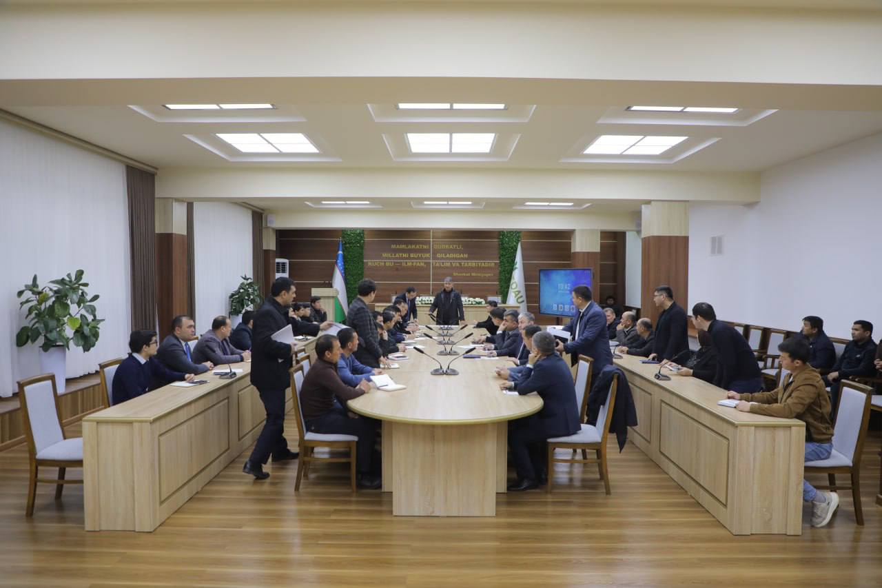 Данное совещание прошло под руководством заместителя хокима Ташкентской области О. Султанбекова. В мероприятии приняли участие руководство университета, деканы факультетов, начальники отделов и заведующие кафедрами. В ходе обсуждения были детально рассмотрены вопросы трудоустройства выпускников по полученной специальности, их направления на имеющиеся вакантные рабочие места в районах области, а также выведения сотрудничества с работодателями на качественно новый уровень. В рамках совещания в разрезе каждого факультета был проведён анализ количества выпускников, направлений их подготовки и потребностей рынка труда. Особое внимание было уделено необходимости интеграции образовательного процесса с практикой, усилению взаимодействия с производственными предприятиями и широкому внедрению системы дуального образования. Отмечено, что в рамках дуального образования студенты уже в период обучения смогут осуществлять практическую деятельность на предприятиях и в организациях, приобретать опыт работы в реальных производственных условиях и тем самым формировать прочную основу для последующего трудоустройства на постоянной основе.