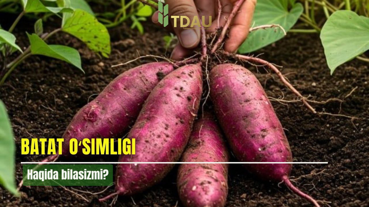 Батат (Ipomoea batatas) — многолетнее теплолюбивое растение из семейства вьюнковых. Его родина — Мексика и Центральная Америка. В пищевой промышленности батат используется для консервирования, производства крахмала, сиропа и спирта. С древних времён его также выращивают в Китае. Батат выращивают в Японии, США, Испании, Индии и других странах, а также в Закавказье и Центральной Азии (Туркменистан, Таджикистан). Урожайность составляет 200–300 центнеров с гектара. Батат размножается черенками. В феврале–марте в теплицах из проростков клубней готовят черенки, которые укореняют в парниках. Рассаду высаживают в мае, соблюдая расстояние 70–80 см между рядами и 30–40 см между растениями. Почву вокруг растений регулярно рыхлят и удобряют, за сезон проводят 12–14 поливов. В сентябре–октябре сначала скашивают ботву, затем выкапывают клубни. Ботва (в свежем виде, сушёная или силосованная) является хорошим кормом для скота.