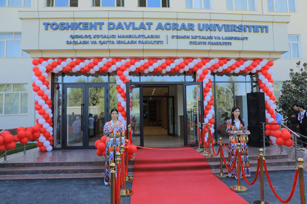 В честь 34-й годовщины Независимости Республики Узбекистан в нашем университете торжественно открыт новый четырёхэтажный учебный корпус на 1350 мест. Это здание станет источником знаний не только для студентов, но и для всей аграрной сферы. В новом учебном корпусе размещены 8 современных лабораторий, 8 просторных лекционных залов, 38 семинарских комнат, отдельные кабинеты для профессорско-преподавательского состава, деканаты факультетов и вспомогательные подразделения. Теперь в данном здании будут функционировать факультеты «Лесное хозяйство и ландшафтный дизайн» и «Хранение и переработка сельскохозяйственной продукции». Министр сельского хозяйства Республики Узбекистан Иброхим Абдурахмонов, выступая на мероприятии, подчеркнул важность современных условий для воспитания молодого поколения как квалифицированных специалистов, сказав:«Сегодня в развитии сельского хозяйства молодые кадры являются важнейшим звеном. Возведение таких современных учебных корпусов для углублённого освоения знаний — это яркое выражение внимания нашего государства». Также министр отметил успехи ТДАУ в международном сотрудничестве. В частности, было подчеркнуто, что связи с Китаем активно расширяются, а процессы обмена опытом успешно продолжаются.