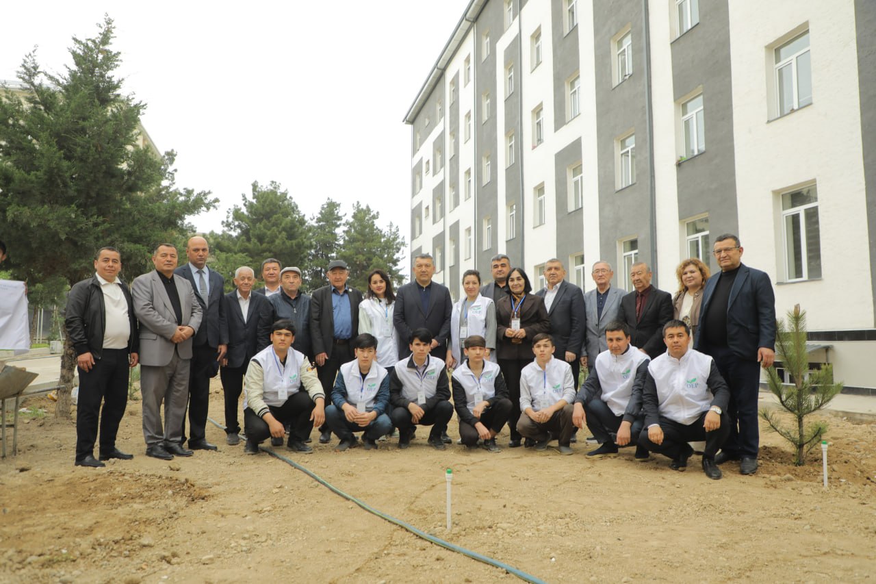 Yangi yotoqxona atrofidagi ushbu yashil hudud kelgusida talabalarning darsdan bo‘sh vaqtlarini mazmunli o‘tkazishlari, toza havoda hordiq chiqarishlari va universitet landshaftining yanada go‘zal qiyofaga kirishi uchun xizmat qiladi.