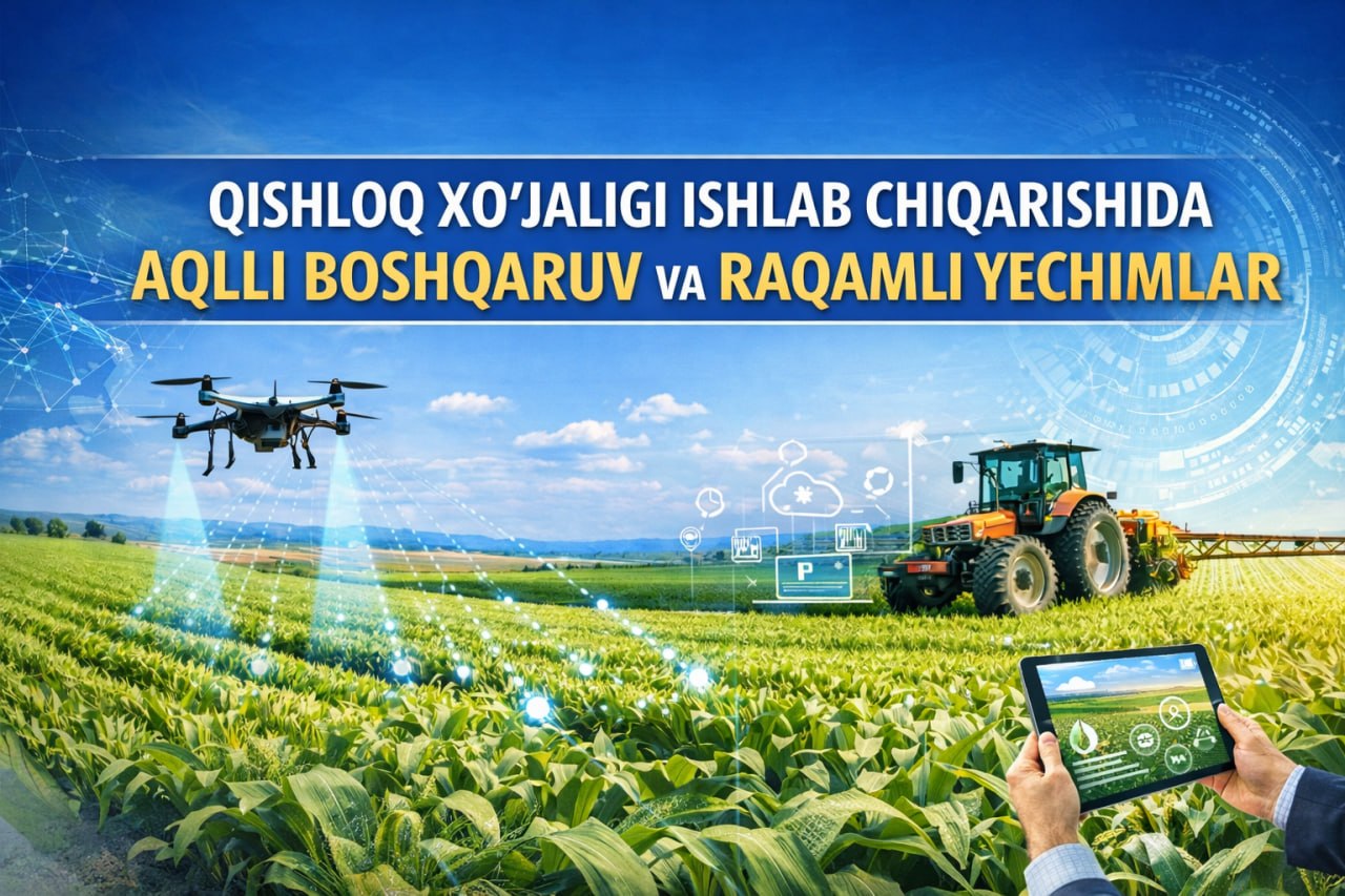 Toshkent davlat agrar universiteti 2026-yil 8-aprel kuni «Qishloq xo‘jaligi ishlab chiqarishida aqlli boshqaruv va raqamli yechimlar» mavzusida respublika miqyosidagi anjuman o‘tkazilishini ma’lum qiladi.