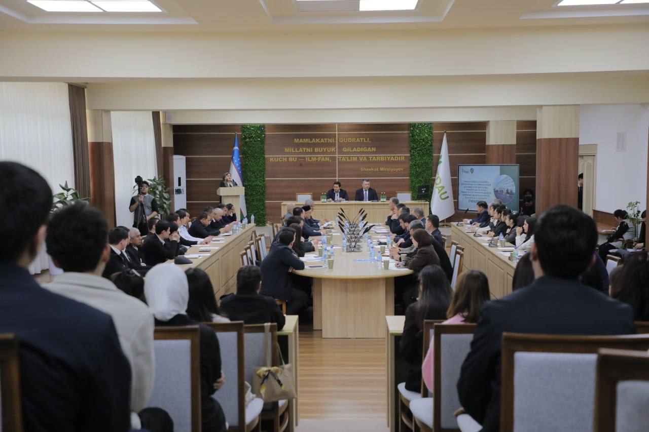 Uchrashuvda universitet rektori N. Oblomuradov Bugungi kunda o‘rmon xo‘jaligi va landshaft dizayni sohasida malakali kadrlar tayyorlash, ta’limni amaliyot bilan uyg‘unlashtirish dolzarb vazifa hisoblanadi. Bu borada sohaga mas’ul tashkilotlar bilan hamkorlikni yanada mustahkamlash, talabalar uchun real ishlab chiqarish muhitida bilim va ko‘nikmalarni oshirish muhim ahamiyat kasb etadi. Ushbu uchrashuv kelgusida o‘zaro manfaatli loyihalarni amalga oshirish, ilm-fan va amaliyotni uyg‘unlashtirishga xizmat qiladi,” — deya o‘z fikr va mulohazalarini bildirib òtdi. Shundan so‘ng O‘rmon va yashil hududlarni ko‘paytirish, cho‘llanishga qarshi kurashish agentligi direktori E. Muxitdinov nutq so‘zlab, soha rivoji, dolzarb masalalar hamda istiqboldagi vazifalar haqida atroflicha ma’lumot berdi. Tadbir davomida O‘rmonchilik va landshaft dizayn kafedrasi professori E. Berdiyev tomonidan ilmiy-ta’limiy faoliyat, kadrlar tayyorlash jarayoni hamda amaliy ishlar yuzasidan ma’ruza qilindi.