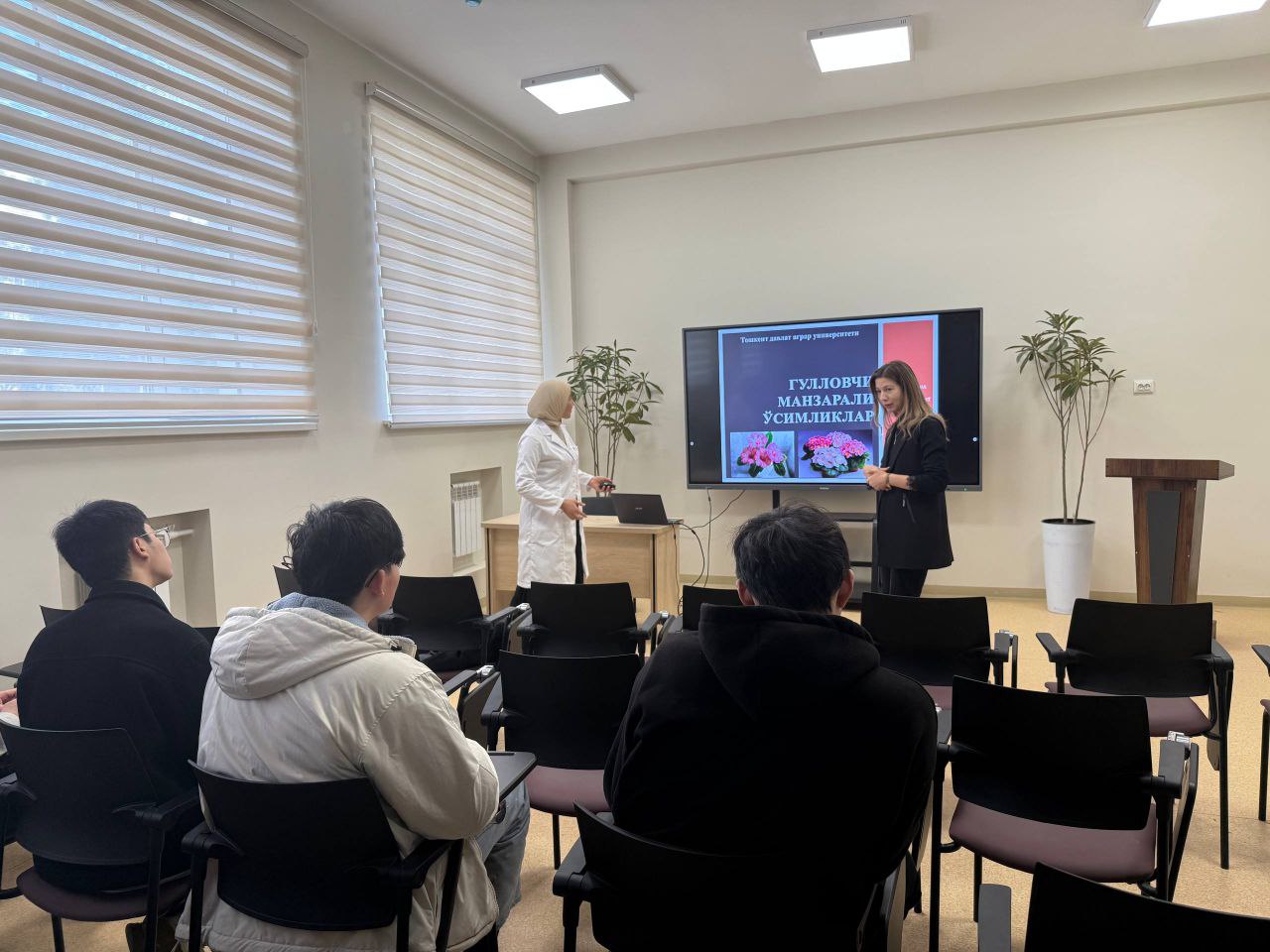 Jumladan, fakultet dotsenti Xolova Shohista tomonidan xorijiy tilda dars mashg‘uloti o‘tkazildi.Mashg‘ulot davomida landshaft dizaynining tarixiy shakllanishi, zamonaviy rivojlanish yo‘nalishlari, ekologik va estetik yondashuvlar hamda hududlarni obodonlashtirishda ilmiy asoslangan dizayn yechimlarining ahamiyati yoritib berildi. Nazariy bilimlar xalqaro tajribalar va amaliy misollar asosida mustahkamlandi.